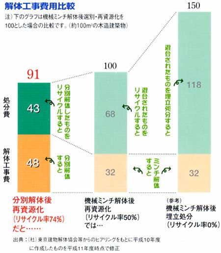 最終処分まで含めると建物を解体するために必要になる費用は、平均的にミンチ解体より分別解体の方が安くなります。